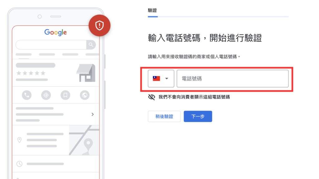 • 電話驗證:Google 會透過語音系統,致電你的商家電話號碼,需要接聽電話並按照指示操作。建議先把分機關掉,或透過手機驗證。